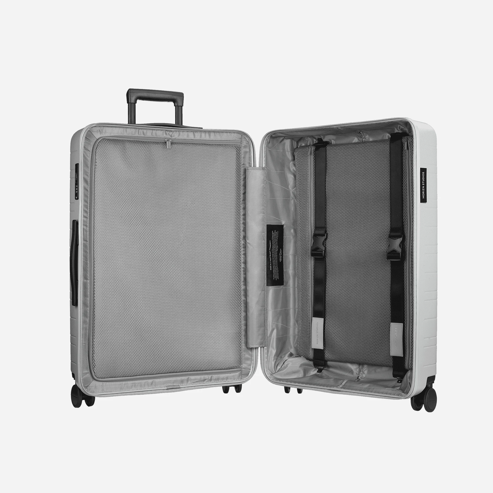 The reliable companion for your journeys of two weeks and longer. Our extra-large sustainable luggage, engineered in Germany and built to go the distance. This smart edition complies with the largest check-in size and has a compression pad.